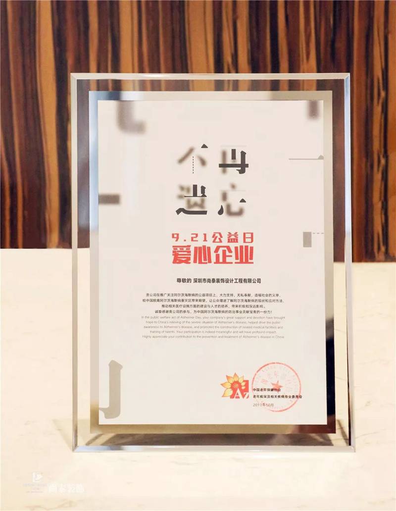 該公益活動(dòng)旨在讓患者獲得更多關(guān)懷,活動(dòng)最終話題閱讀量3685.6萬(wàn),觸達(dá)粉絲數(shù)1億70萬(wàn),話題討論量10.6萬(wàn),字體活動(dòng)使用量10.5萬(wàn)余次。活動(dòng)結(jié)束后,中國(guó)老年保健協(xié)會(huì)為尚泰裝飾授予“9.21公益日愛(ài)心企業(yè)”榮譽(yù)證書(shū)。