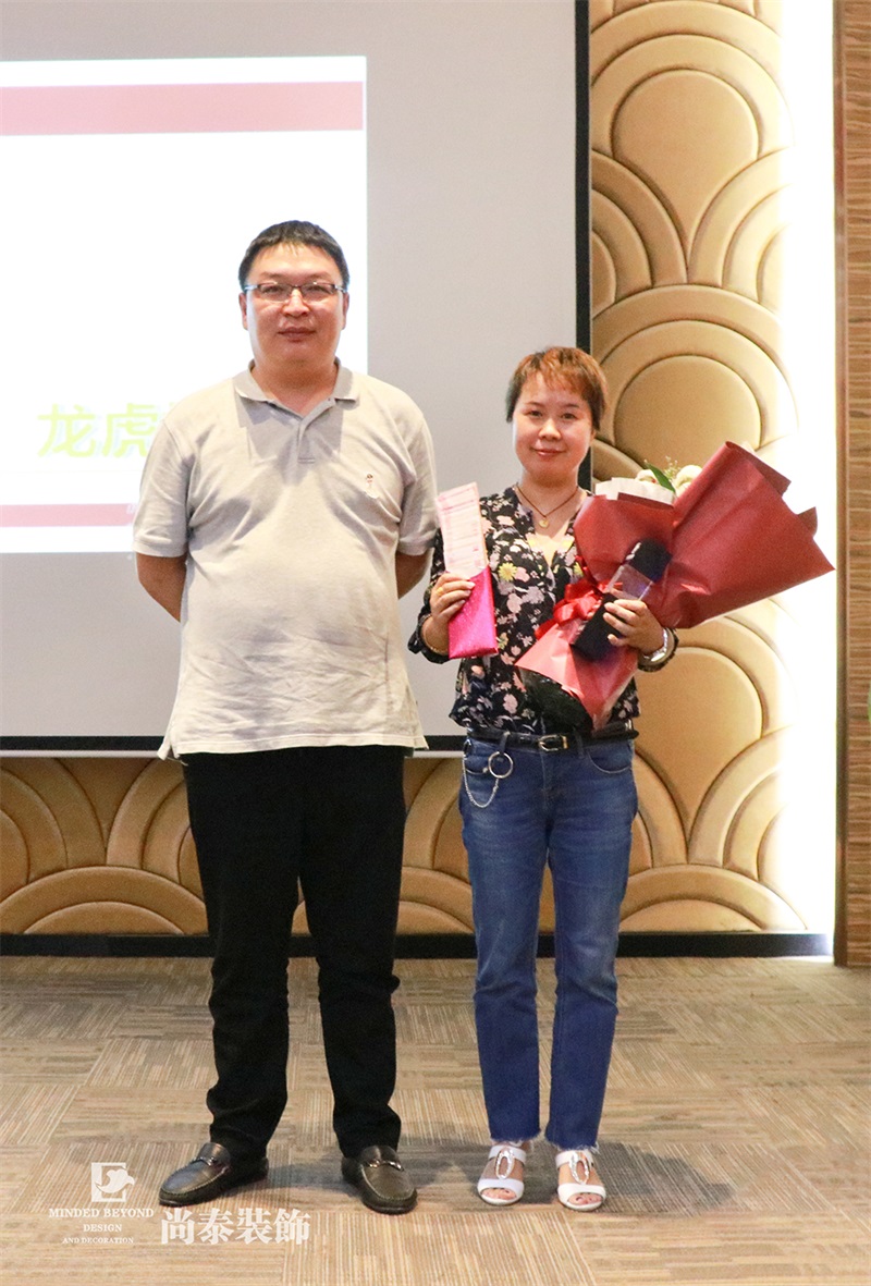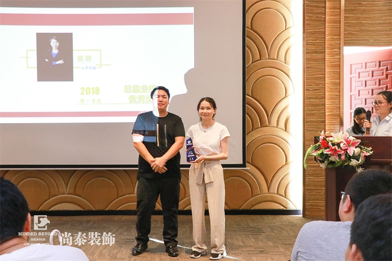 首先頒發(fā)的2018第一季度總監(jiān)業(yè)績優(yōu)秀獎由來自福田區(qū)域山禾分公司的黃珊總監(jiān)斬獲。她在過去的幾個月,剛剛升級做了一位母親,休假數(shù)月再次投入工作一線,即率先以出眾的實力拿到此獎,在高手如云的尚泰裝飾,堪稱巾幗不讓須眉的典范。