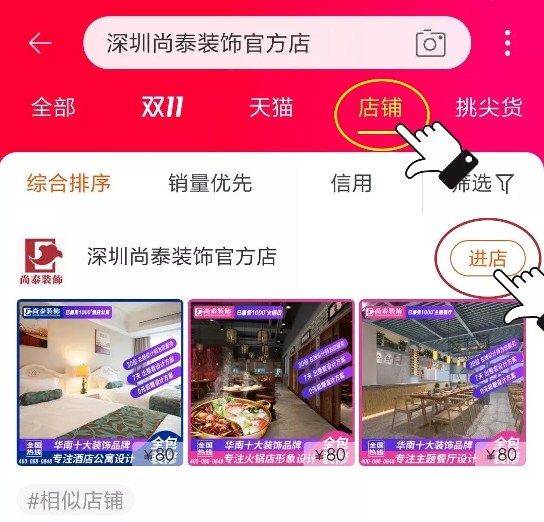 4、進入淘寶搜索“深圳尚泰裝飾官方店”,進入店鋪并關注,截圖發(fā)送給客服。
