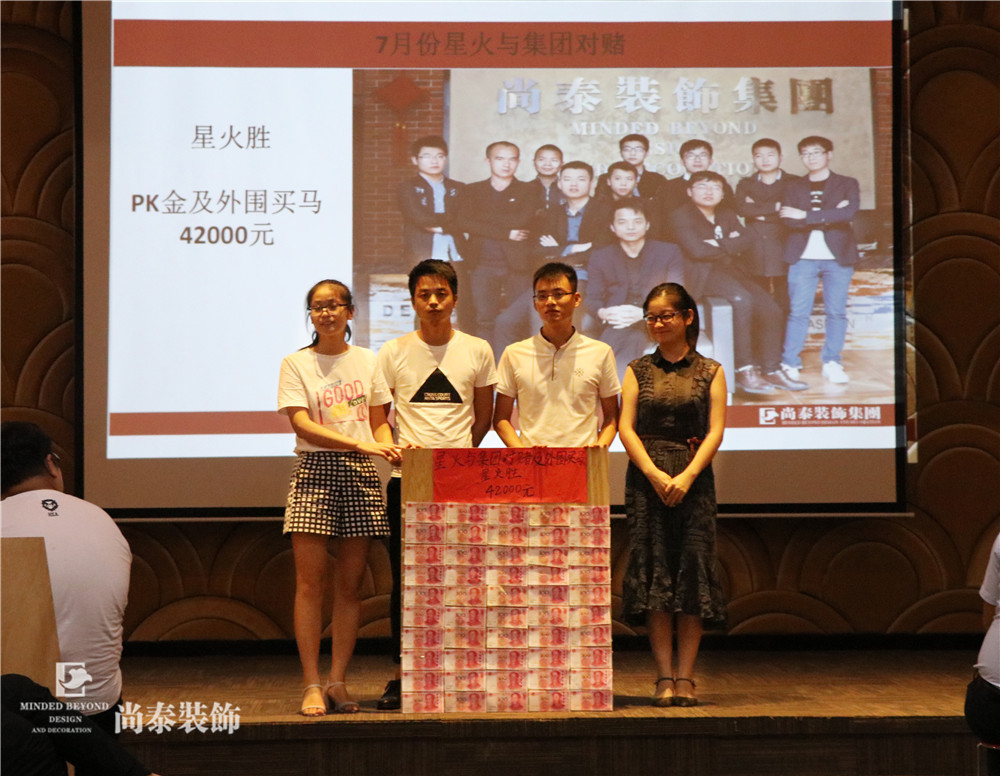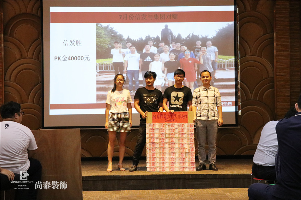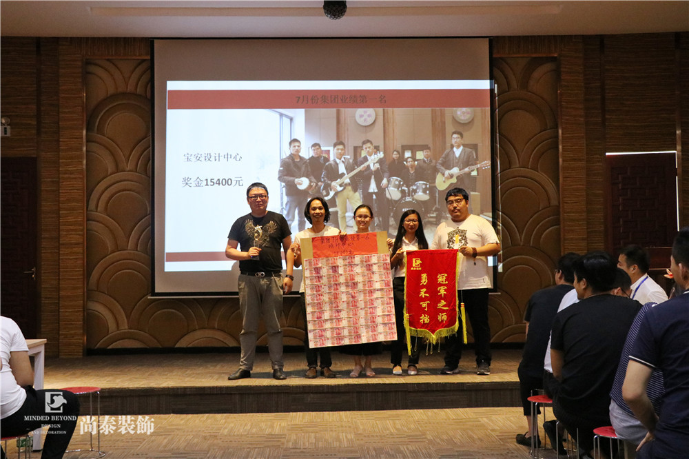 在贏得霸氣、標桿榜樣的時刻,7月份各分公司業(yè)績PK及排名無疑牽動著現(xiàn)場人員的心,尚泰裝飾設立為每個月份業(yè)績突出的分公司及團隊授予榮譽和PK金作為獎勵,樹立標桿和榜樣,以激勵大家再接再厲!