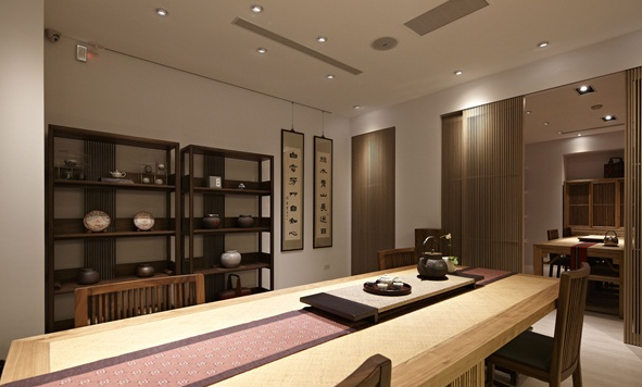 本案位于深圳市南山區(qū),是一間由日本茶道老師授課的茶道教室以及販?zhǔn)鄹邫n茶葉的商業(yè)空間,從事房地產(chǎn)的屋主也希望能將此空間作為招待親友客戶的會所,以培養(yǎng)自己的人脈關(guān)系。屋主希望能跳脫已往嚴(yán)謹(jǐn)保守的傳統(tǒng)日式風(fēng)格,并且注重空間質(zhì)感與舒適度,因此,設(shè)計師便以淺色木建材以及溫暖柔和的燈光設(shè)計,營造明亮清爽的舒適氛圍。在設(shè)計師巧妙的安排之下,屋主珍藏的藝術(shù)品與空間相互搭配,彼此相輔相成,展現(xiàn)沉穩(wěn)內(nèi)斂的人文氛圍,屋主表示喜歡這些藝術(shù)品的客人,也能將它買下帶回家。在門面上的設(shè)計上,希望一眼就能讓客人感受到質(zhì)感與品味,因此設(shè)計師在門面上加入許多的巧思。