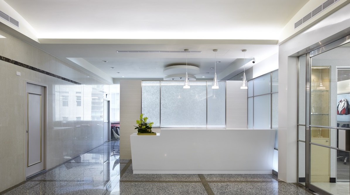 在迎賓大廳內(nèi),采霧面材質(zhì)做為四周墻面,并以亮面大理石鋪陳地坪,展現(xiàn)大器簡(jiǎn)約感,將大量純白色作為空間主調(diào),給人清爽舒適的體驗(yàn),同時(shí)巧妙配置兩張色彩鮮明的沙發(fā),讓跳躍色彩增添視覺活潑度,藍(lán)色招牌則使用壓克力雕刻,并配置超薄 LED 燈,營(yíng)造出反射的立體效果,加深品牌印象;會(huì)議室采用清玻璃門片,維持整體空間的通透感,使開會(huì)氣氛透明且公開,并在會(huì)議室兩側(cè)墻面注入展示機(jī)能,用來放置公司商品,在整齊的陳列之下,給人一目了然的感受!