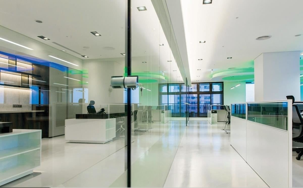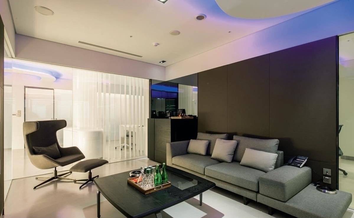 ▲在無彩度、無雜質(zhì)的白色基底中,融入漸變燈光與流轉(zhuǎn)線性,突破了制式的辦公室樣貌,貼切傳達(dá)企業(yè)主旨,演繹商品“布料”的優(yōu)雅形象。