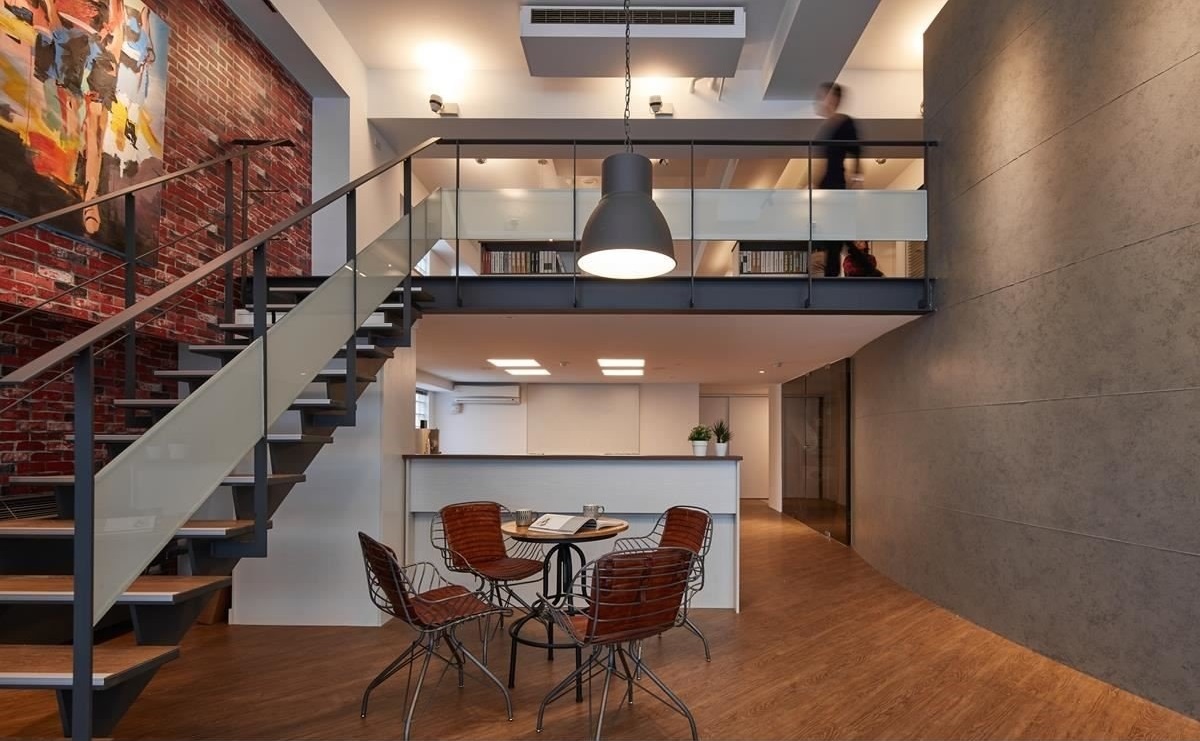 設(shè)計(jì)師借由地板材質(zhì)的差異,區(qū)分區(qū)落塵與室內(nèi)范圍;同時(shí)采用價(jià)格相對(duì)經(jīng)濟(jì)、但兼具仿真視感的替代性建材,構(gòu)筑出美好的 Loft 風(fēng)格,像是一整面串聯(lián)樓層的粗獷紅磚墻,實(shí)則為仿紅磚壁紙,另一端與之對(duì)話的是仿清水漆料,而溫潤(rùn)細(xì)致的木地板,則采用仿木紋塑膠磚取而代之,以經(jīng)濟(jì)、實(shí)惠又美形的設(shè)計(jì)手法,精準(zhǔn)貼近業(yè)主的預(yù)算與需求,亦更符合商辦的使用情境。