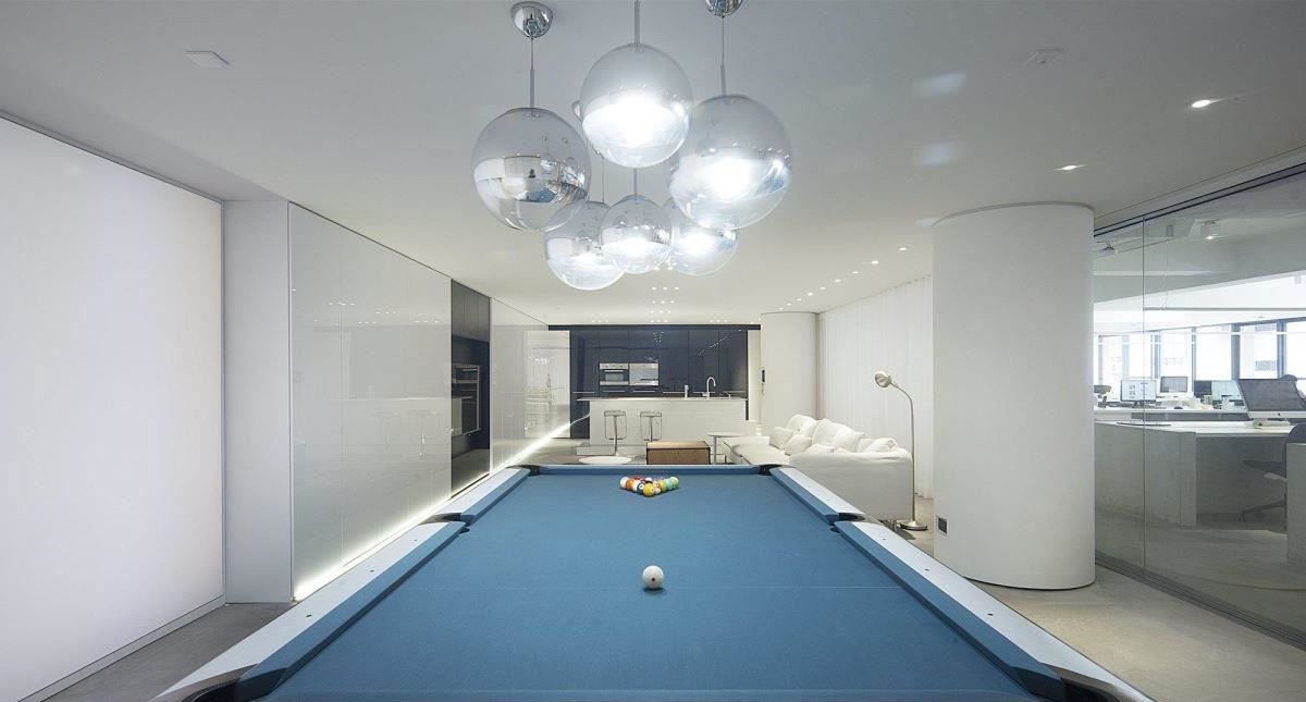 會(huì)議空間配置撞球桌及 7 字型大沙發(fā),使員工、來(lái)往賓客擁有回家般的自在感受。