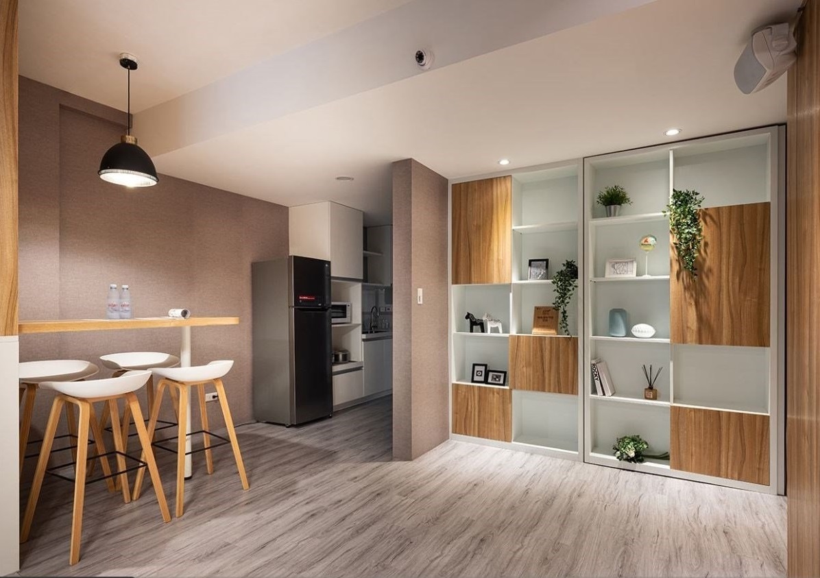 25 坪長型老屋全面重啟!休閑吧臺(tái)、旋轉(zhuǎn)書柜,待九個(gè)小時(shí)也不倦怠屋主是對于美容產(chǎn)品相當(dāng)有研究的創(chuàng)業(yè)家,希望空間可以改造成工業(yè)風(fēng),但不想要過于粗獷,所以設(shè)計(jì)師在室內(nèi)采取大地色系的壁紙,搭配大面積的木質(zhì)調(diào),營造出溫暖有個(gè)性的空間氛圍。由于采光較為不足的關(guān)系,空間盡可能采用開放式設(shè)計(jì),結(jié)合風(fēng)格獨(dú)特的造型吊燈,跳脫一般辦公空間的制式印象。