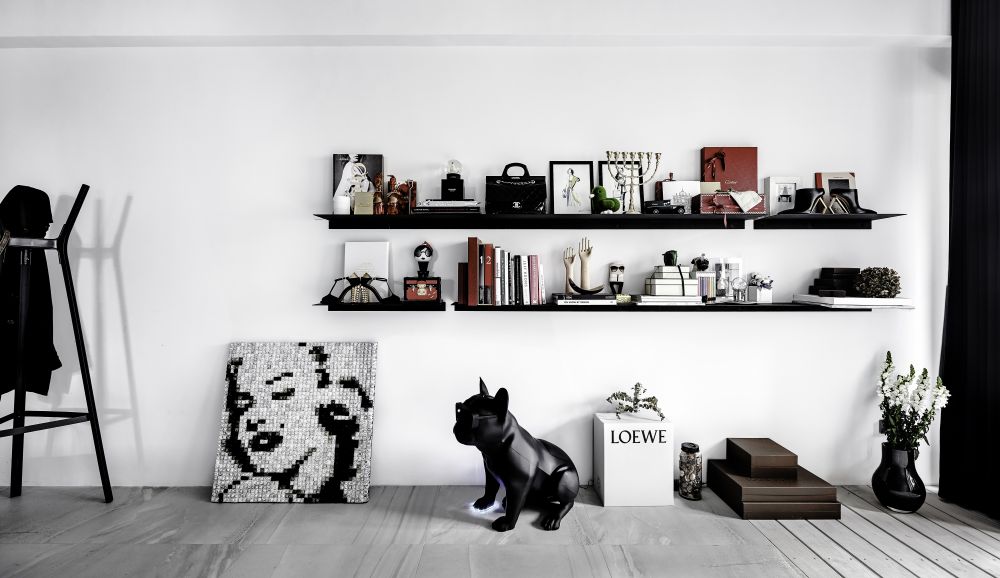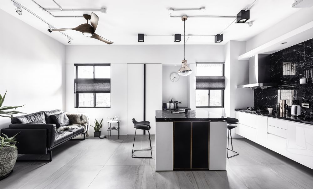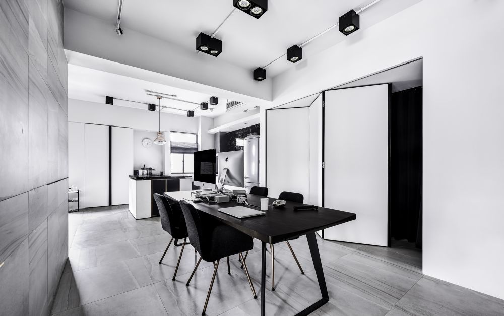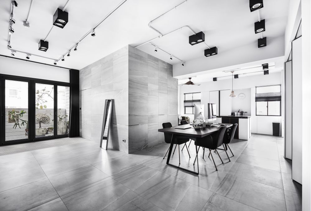 “將工作的生態(tài)融入空間中,結合攝影、更衣室、化妝臺有如小型的時尚伸展臺”氛圍設計總監(jiān)林英彥一語帶出整個空間的設計核心。從事時尚產業(yè)的一對夫妻,希望將品牌的風格與個性帶進自己的工作室同時融入生活中,于是造就了這個性鮮明、以黑、白、灰為主且住辦合一的空間。