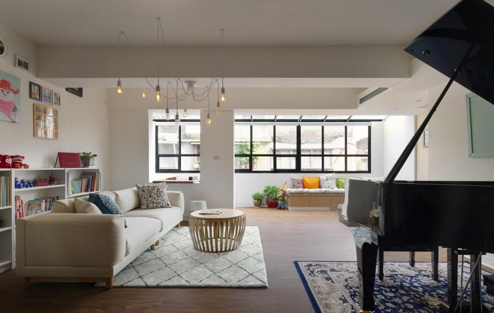 大大的鋼琴矗立客、餐廳之間,仿佛家就是舞臺,無論是工作或生活隨時(shí)都有浪漫琴音相伴,搭配著鄉(xiāng)村風(fēng)空間風(fēng)格更是唯美,而一旁羅曼蒂克的湖綠色廚房則增添清新氣息。為了滿足上課或發(fā)表會時(shí)有眾多學(xué)生、家長等乘坐需求,無論是客廳或餐廳教學(xué)區(qū)都有大量桌椅,而開放格局也讓空間更顯舒適。