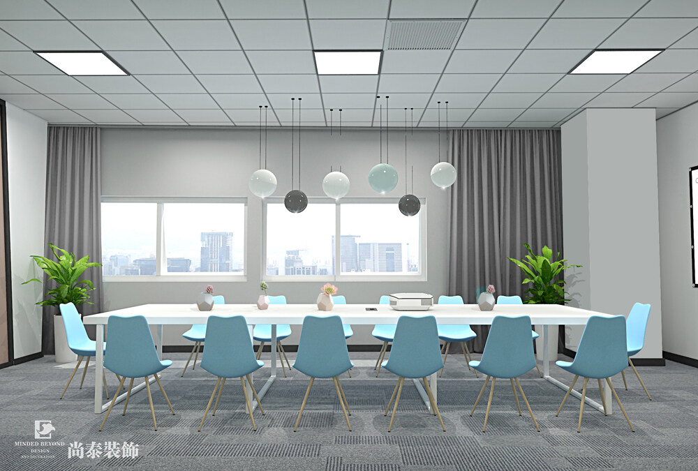 會議室的頂部石膏板和燈具為裝飾滿足了會議室功能的需求,空間寬敞明亮辦公空間裝修著重體現(xiàn)工作與生活的有機融合,簡潔而明亮地處理辦公區(qū)域,并用頂層噴漆進行處理。
