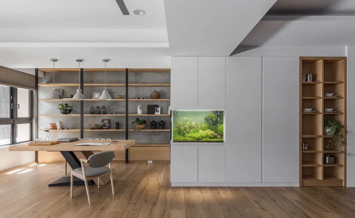 后疫情時代,居家辦公的時間多了,因此打造一個療愈系居家,讓身心舒適愜意,辦公效率也可達到事半功倍。此案為50坪混搭風(fēng)空間,揉合木質(zhì)、水泥粉光以及清水模等自然材料,搭佐通透格柵作為領(lǐng)域界定,特調(diào)出純凈、開闊的清新宅。