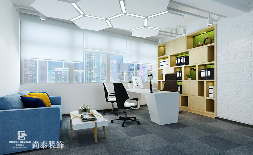 小型辦公室面積雖然無法改變,但我們可以從空間來下手,選擇開放式辦公室就是一個(gè)很好的技巧。開放式辦公室裝修采光好,布局緊湊密集,能夠充分利用辦公室空間,沒有墻壁遮擋就不會(huì)顯得擁擠,從視覺上給人一種很寬闊的感覺。在有需要的地方采用書架或屏風(fēng)進(jìn)行簡單隔斷,還能讓員工溝通更便捷,更能融入在一起。而且現(xiàn)在非常流行開放式辦公區(qū)域,在外人看來也是非常時(shí)尚。