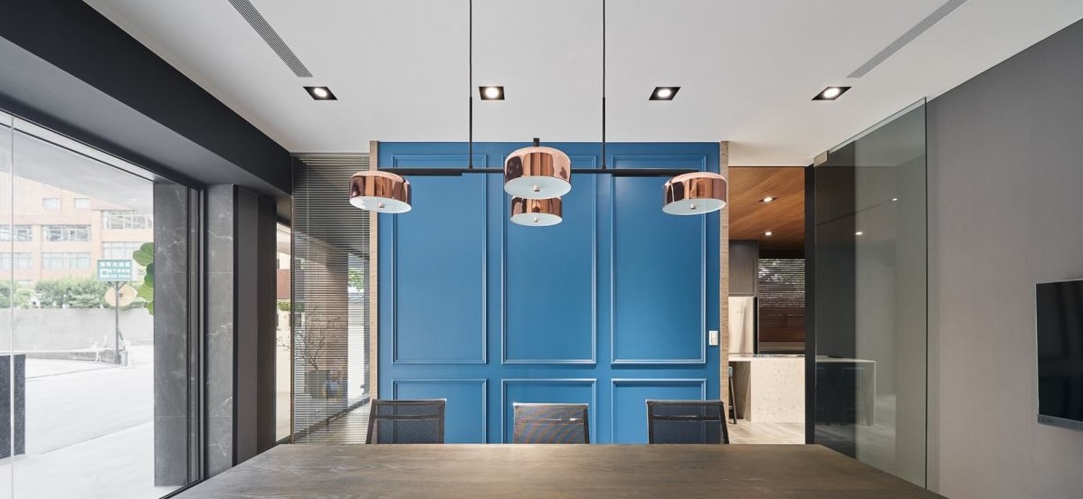小編帶你看好宅 60 坪的 30 年老屋改建成現(xiàn)代風(fēng)商辦空間,設(shè)計(jì)師重整管線與格局、重新分配空間,并引入充足采光,搭配多元異材質(zhì)展現(xiàn)豐富層次,展現(xiàn)有別于制式商空的風(fēng)格視野,快跟著小編一起來看看吧! 建物外觀以黑色磚墻搭配銹蝕鐵門,展現(xiàn)略帶工業(yè)感的氣息,并于落地窗內(nèi)擺設(shè)庫柏力克熊公仔、隨時與行人打招呼,形成趣味景象;空間內(nèi)配置多座木作展示柜,呈現(xiàn)穿透造型、形塑延伸效果,并加入淺色木質(zhì),與木紋地板做呼應(yīng),挹注放松溫潤的氛圍,而會議室、辦公區(qū)則特別以藍(lán)色線板墻作視覺跳出,豐富整體表情;接待區(qū)設(shè)置了長型中島臺,以白色石材臺面搭配深灰色餐櫥柜,營造優(yōu)雅內(nèi)斂的品味!