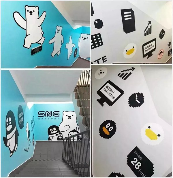 ▼騰訊SNG辦公樓萬利達(dá)大廈“QQfamily”主題樓梯間