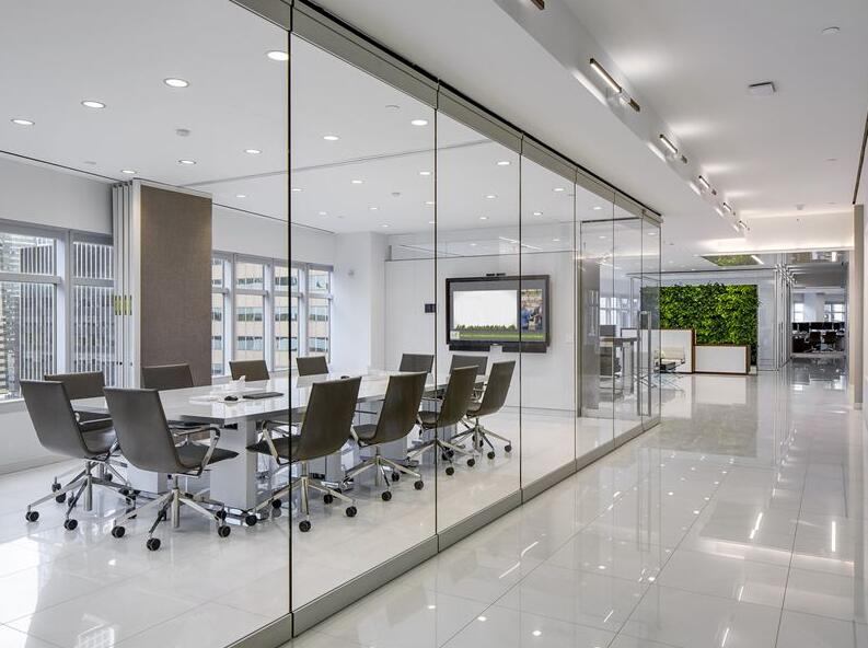 通過搭配色彩、圖案,給空間更多的視覺空間,比如利用圖案線條的延伸,拉長或者加高空間。同時,裝飾辦公室時,適當利用一些鏡面反光材料,創(chuàng)造一些視覺空間。
