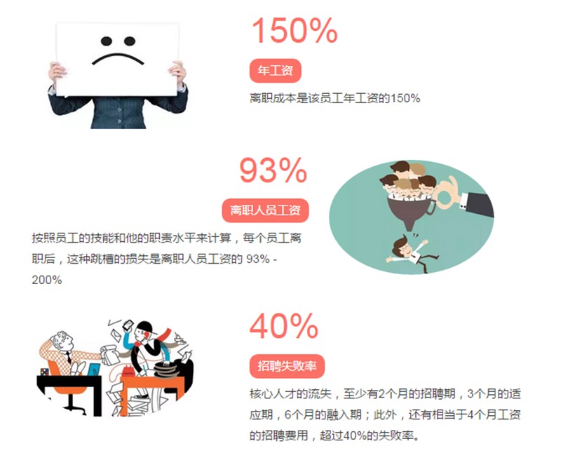 據(jù)《財富》 調(diào)查報告稱:員工離職后,從找新人到順利上手,光是替換成本就高達離職員工薪水的1.5倍,如果離開的是管理人員則代價更高;財富500強公司通過積極招聘離職員工每年平均就能節(jié)約1200萬美元;調(diào)查顯示,返聘人才的工作效率比哪些真正“新入職”的人要高出40%-50%。