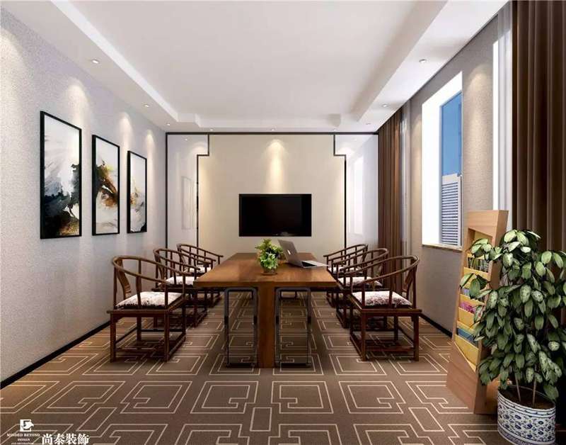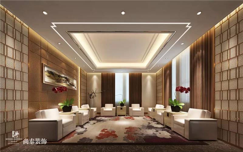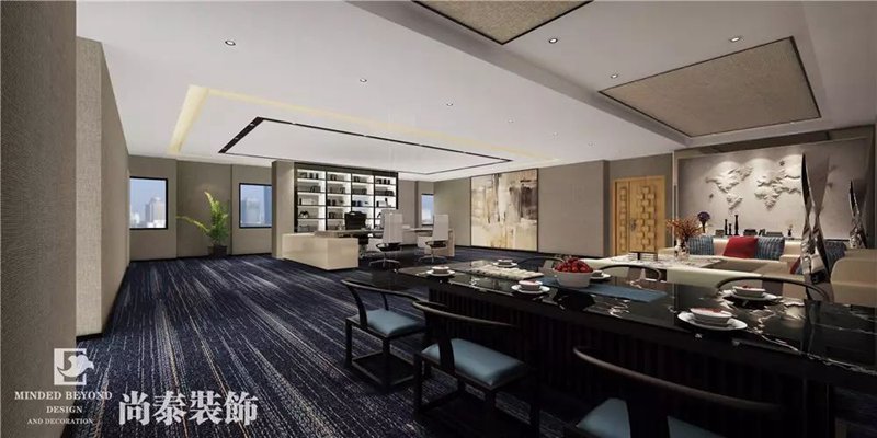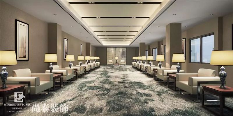 中式風格的地毯以及傳統(tǒng)燈籠造型的燈具,搭配白色家具,給人意想不到的典雅,既體現(xiàn)了公司的強勁實力,也能獲得投資客戶的良好印象,還間接展示了企業(yè)務實、創(chuàng)新,穩(wěn)健的經(jīng)營理念。