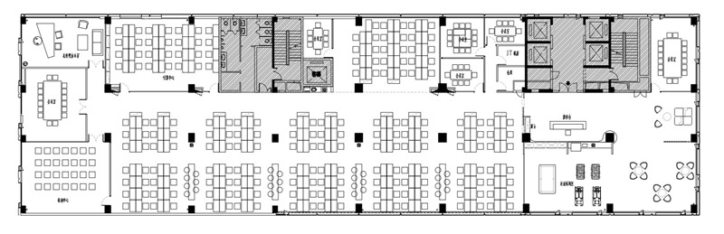 這個(gè)階段快速增長(zhǎng)的員工人數(shù)決定了辦公空間還是以功能性需求為主,公共空間/效能型空間的需求開(kāi)始涌現(xiàn),企業(yè)文化在辦公空間中應(yīng)用有了更高的要求。家具上部分選擇本區(qū)域的一線品牌。