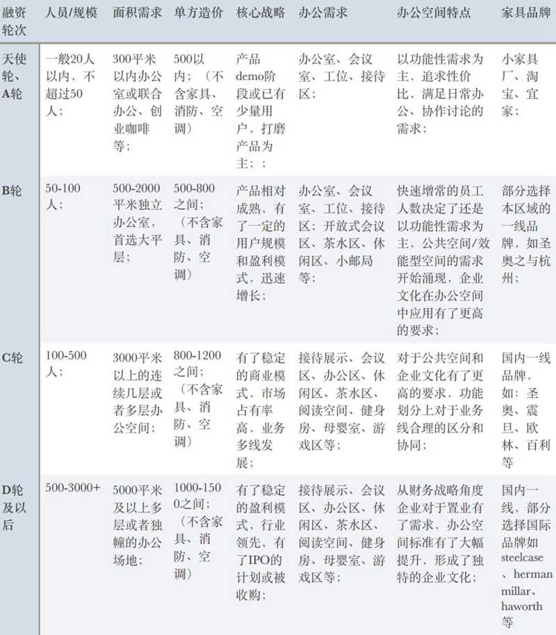 通過(guò)以上案例及歷年案例總結(jié),我們可以看出迅猛發(fā)展的中國(guó)企業(yè)不同融資階段的辦公空間具有某些共同的特點(diǎn)。