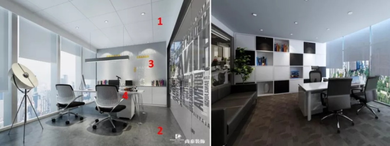 本案設(shè)計(jì)在滿足辦公空間功能需求的前提下,設(shè)計(jì)師運(yùn)用現(xiàn)代、時(shí)尚、簡(jiǎn)約的設(shè)計(jì)語(yǔ)言,