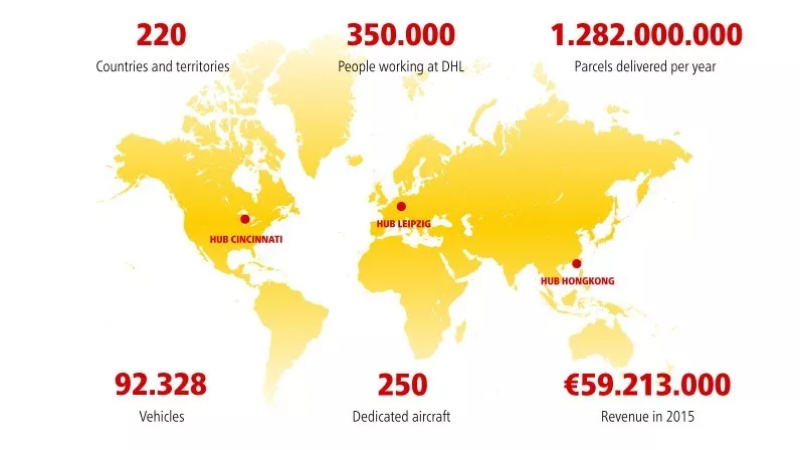 以下是DHL全球的統(tǒng)計(jì)數(shù)據(jù),展示全球最大的快遞和物流網(wǎng)絡(luò)的實(shí)力。