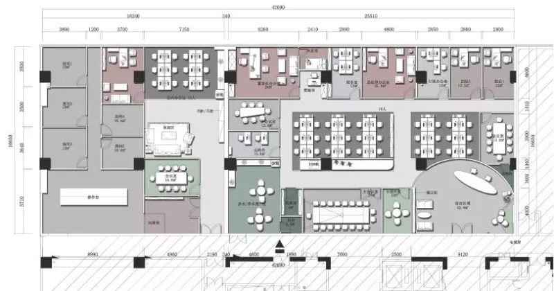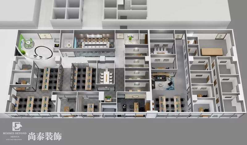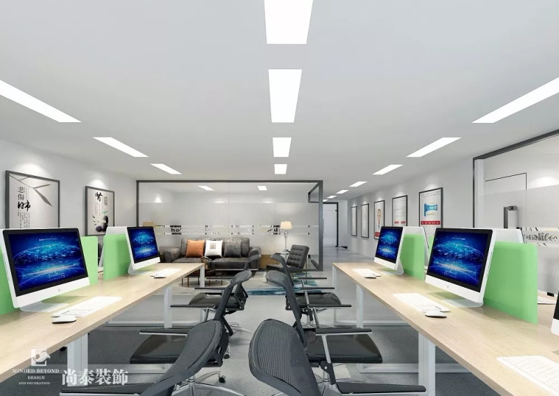 開放辦公區(qū)域作為整體員工工作區(qū)域,保證員工舒適性,提高工作效率,