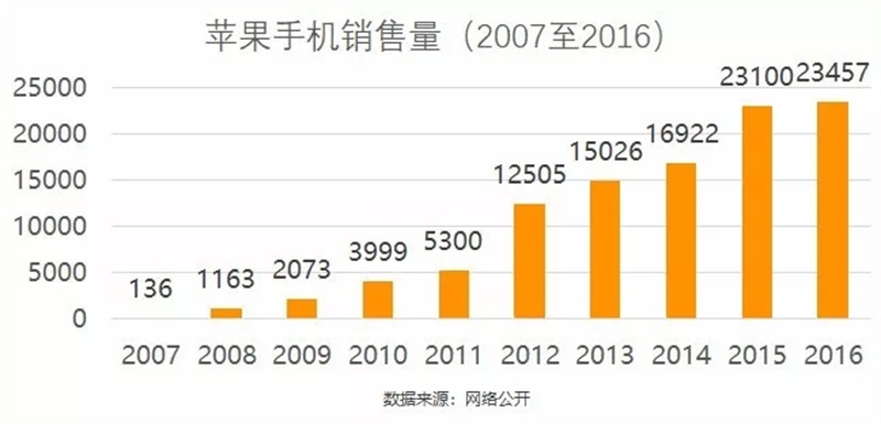 通過上面這張圖,我們可以看出截止至 2017 年,智能手機(jī)高速增長的時(shí)代已經(jīng)結(jié)束了,產(chǎn)品的出貨量已經(jīng)開始下降。