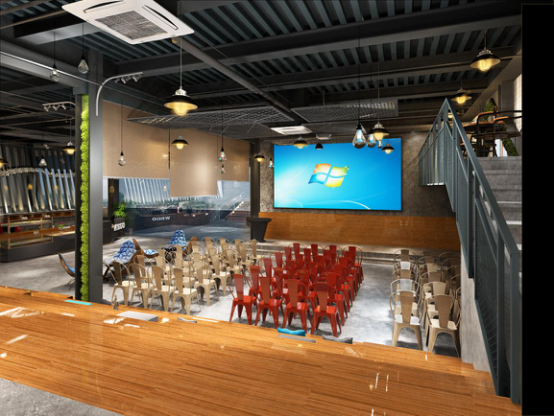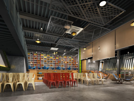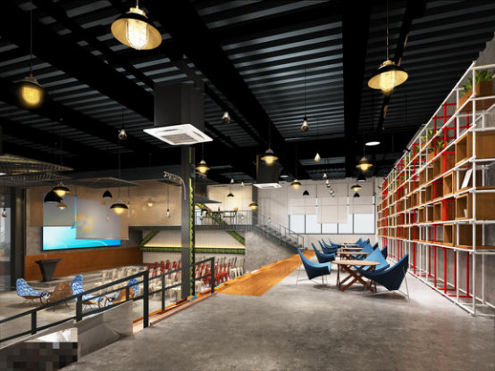 黃老師:在與客戶溝通的過程中,他們希望打造一個高品質(zhì)、人性化、創(chuàng)業(yè)氛圍濃郁的創(chuàng)客空間,我們決定采用當下頗為流行的工業(yè)風格。整體設計出了集辦公、路演、休閑、活動、展示、讀書、玩耍等功能為一體的綜合型空間,甚至還有母嬰室、兒童滑梯、吸煙區(qū)、咖啡吧等超人性化分區(qū),呈現(xiàn)活躍與感染力的設計神韻。