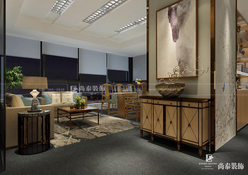 基于飛毛腿20年的實(shí)力影響,使其沉淀了豐厚的文化底蘊(yùn),尚泰裝飾項(xiàng)目團(tuán)隊(duì)依照此突出特點(diǎn),在風(fēng)格上定為新中式經(jīng)典風(fēng)格,此舉恰巧與客戶一拍即合。本文著重從老總辦公室為要點(diǎn)進(jìn)行設(shè)計(jì)風(fēng)格的闡述。