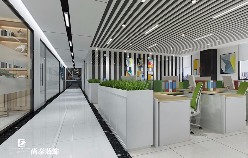 整齊排列的辦公家具突出了現(xiàn)代辦公環(huán)境講究效率的特征,多彩的裝飾物將現(xiàn)代、創(chuàng)意?;盍Φ忍攸c巧妙地融入到環(huán)境中。