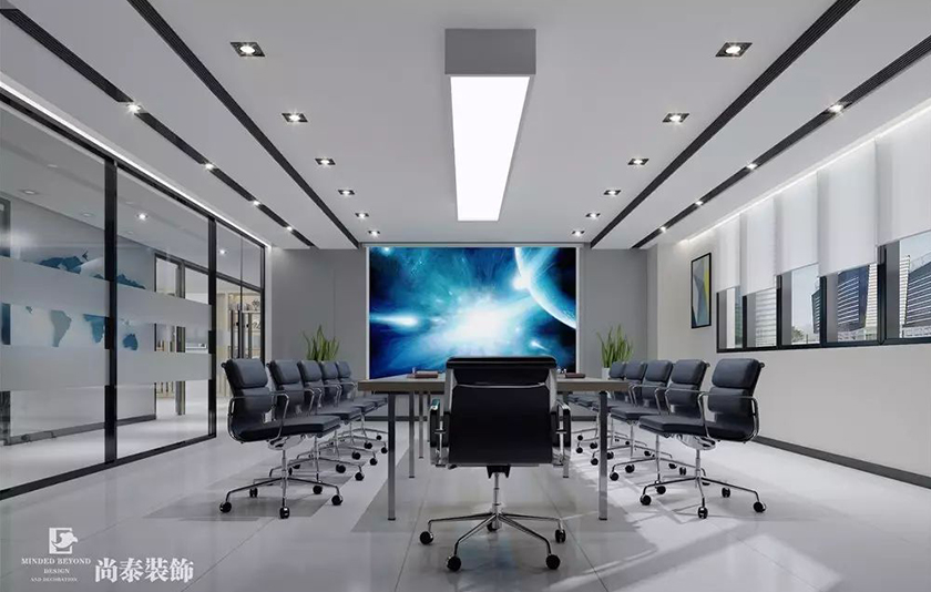 布局對稱,規(guī)范方整的會議室,高科技的元素與銳利的線條營造出簡練、正式、科技化的緋聞氛圍。