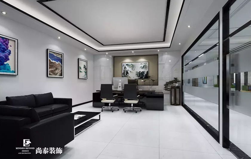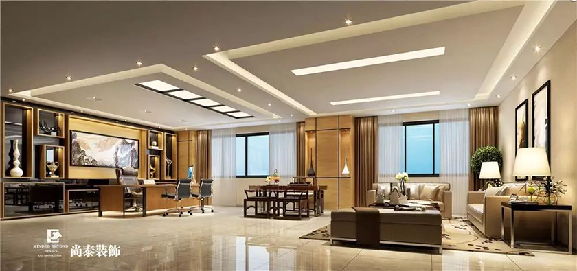 董事長辦公室利用中式元素來演繹永不過時、源遠流長的中國文化,內設的接待區(qū)搭配端莊舒適的辦公家具,給客戶賓至如歸的感覺,陶瓷、水墨畫裝飾則給人意想不到的典雅。