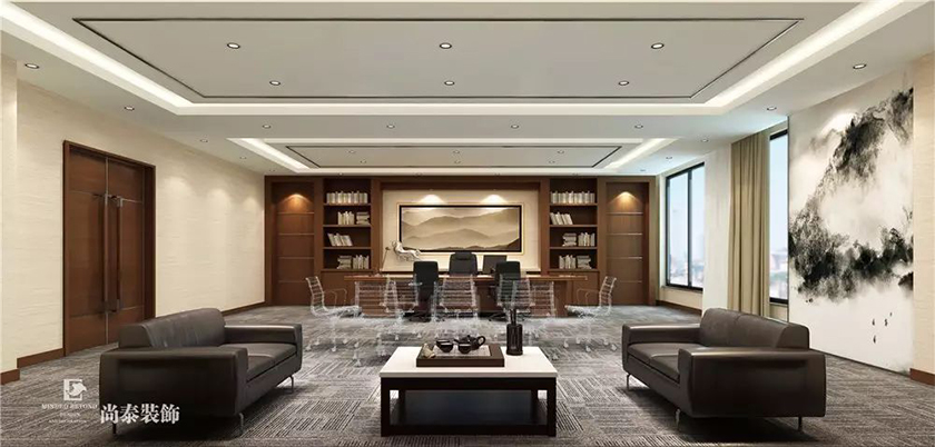 董事長(zhǎng)辦公室則采用新中式風(fēng)格,一幅水墨畫(huà)雅致又有韻味,搭配厚重的實(shí)木辦公家具等,盡顯穩(wěn)重氣質(zhì)。