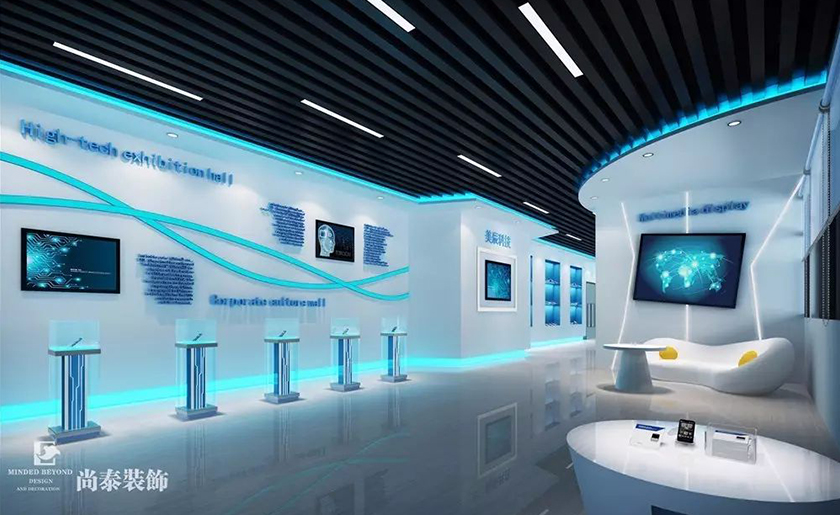 云南美辰科技的展廳同樣讓人過(guò)目不忘,時(shí)尚靈動(dòng)的弧形曲線做造型,配合高科技展示媒體設(shè)備,讓展廳成為產(chǎn)品亮相的最佳舞臺(tái)。