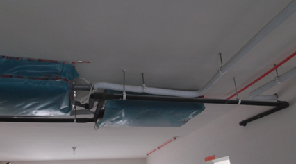 燈槽防塵工藝 吊頂燈槽底部最易積灰(主要是施工粉塵),因此要在施工中加鋪底板,并 在工程完畢后將燈槽內(nèi)積灰清理完畢。 | 中央空調(diào)風(fēng)口防塵保護工藝 中央空調(diào)安裝后,在之后幾個月裝修期內(nèi),如果不采取機體保護,灰塵將大 量的飄進風(fēng)口,并通過回風(fēng)循環(huán),造成使用中的室內(nèi)灰塵污染。尚泰作為施 工標準工藝,在中央空調(diào)安裝后,用專業(yè)防塵膜和隔板,對每一臺內(nèi)機嚴格 保護。 | |