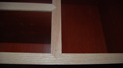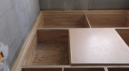 墻面網(wǎng)格布防裂工藝:防止墻面開裂 先在原墻基底上以專業(yè)找平石膏打底,再使用專用防裂網(wǎng)格布大面積 覆蓋墻體,增強墻面的抗拉、抗裂性;最后以石膏批嵌 | 木作v字型收口防裂工藝:防止木線條收口開裂 實木櫥柜的收邊條極易開裂,尚泰在木線條拼接處采用V字型十字交叉,并以無甲醛白膠加強結(jié)合,既精致美觀又防開裂 | |