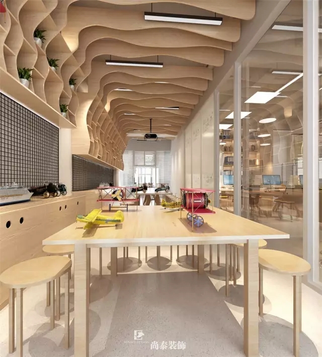 ?本案為南荔工坊的深圳辦公室裝修設(shè)計(jì),客戶希望最大程度上利用好有限的空間,為員工們和來(lái)此學(xué)習(xí)創(chuàng)客知識(shí)的青少年們提供良好的氛圍和環(huán)境。尚泰設(shè)計(jì)師營(yíng)造了一種柔和、溫暖和流暢的氛圍,可以讓員工在工作時(shí)更加輕松,更富有激情;也能夠讓青少年們激發(fā)思維,進(jìn)而更高效的學(xué)習(xí)知識(shí)與技能。