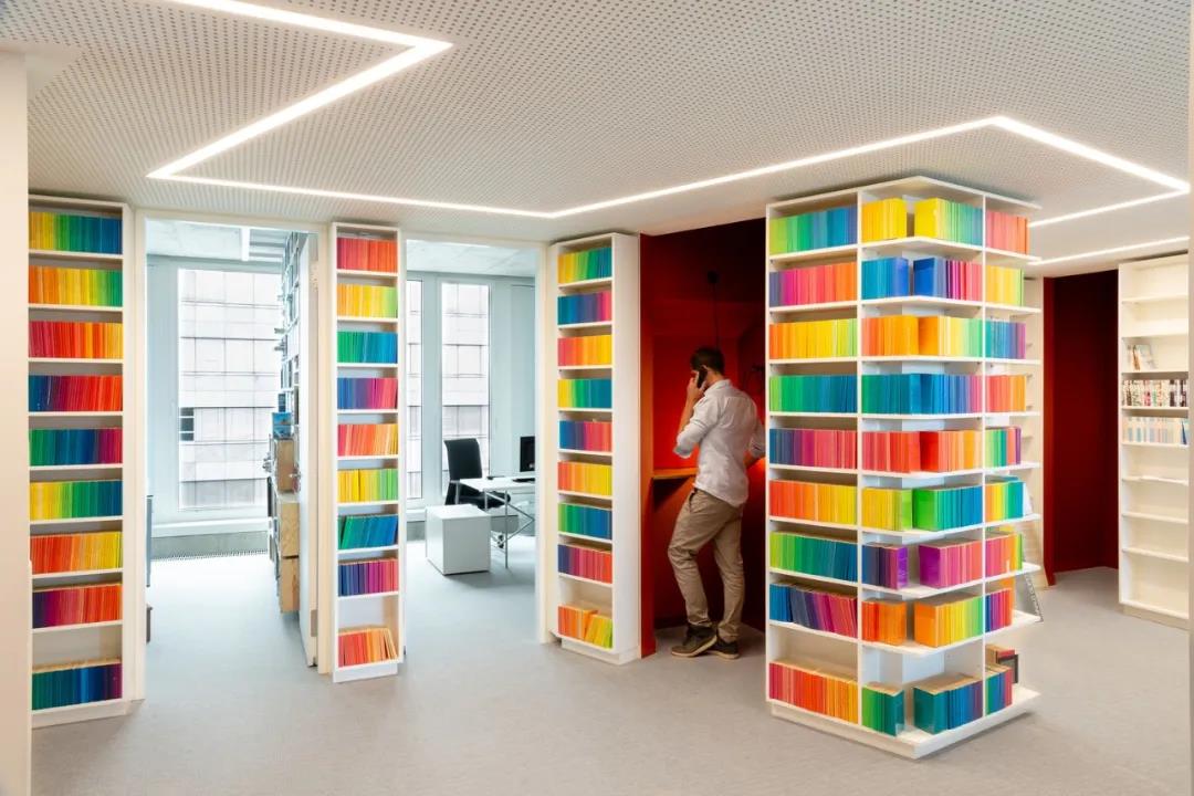 設(shè)計(jì)將出版社擁有的所有藏書都整合到空間中,創(chuàng)造出這樣一個(gè)既適合傳統(tǒng)出版社不同需求又相對(duì)靈活的空間,這樣的出版社辦公室設(shè)計(jì)真的是太贊了!