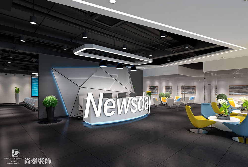 工業(yè)風(fēng)車間辦公室裝修效果圖設(shè)計理念,原本是舊廠房改造,客戶一再表明公司是做科技領(lǐng)域的研發(fā),希望每一個走進新辦公室的人都能感受到這一點,從而加深對本公司的印象。尚泰裝飾的設(shè)計師對前廳的設(shè)計一改辦公室常用的方正設(shè)計,用簡潔硬朗的線條組合成角度不同的邊、角,辦公空間上,設(shè)計師保持了原有建筑空間的高挑,使用大面積的灰色加以裝飾頂棚,地面與墻面各色線條相呼應(yīng),并以此做為路引去到不同的的功能區(qū)域,塑造出工業(yè)化和現(xiàn)代科技的完美碰撞。