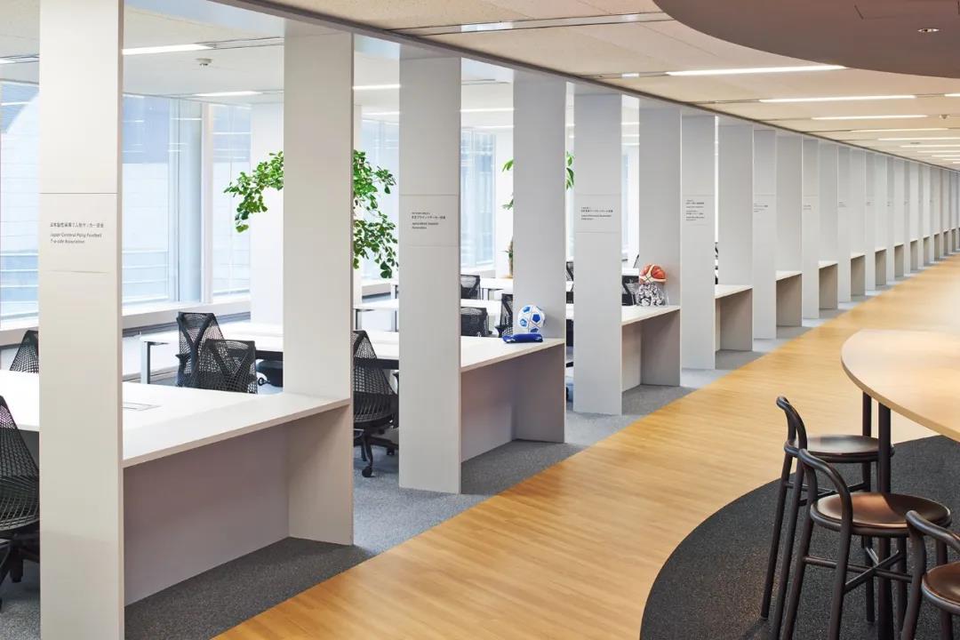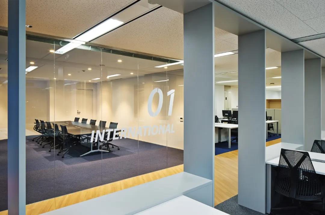 每一個空間都需要有序列感,在空間里營造序列感的方法也有很多,設計師可以運用形式美學中的各種韻律構(gòu)圖和形象,如擺設、表層紋理或者照明等控制空間節(jié)奏,營造出序列感。而空間導向感,則需要具有方向性的視覺元素營造??戳讼旅嫒毡練垔W會基金辦公室設計,你會發(fā)現(xiàn),原來僅用序列感和導向感也可以營造出這么出色的現(xiàn)代辦公室設計。
