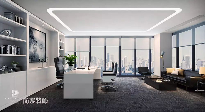 高端的黑色皮椅,木質(zhì)茶幾,墻上的一幅水墨畫凸顯品位,經(jīng)理辦公室擁享優(yōu)質(zhì)的風(fēng)景和光線,極簡、實干、商務(wù)范十足。
